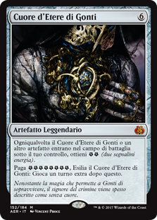 | Rules | Whenever Gonti's Aether Heart or another artifact enters the battlefield under your control, you get (two energy counters). Pay , Exile Gonti's Aether Heart: Take an extra turn after this one. |