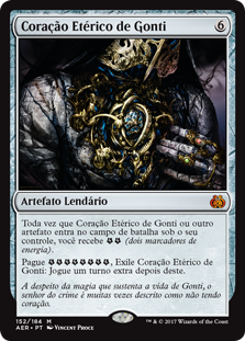| Rules | Whenever Gonti's Aether Heart or another artifact enters the battlefield under your control, you get (two energy counters). Pay , Exile Gonti's Aether Heart: Take an extra turn after this one. |
