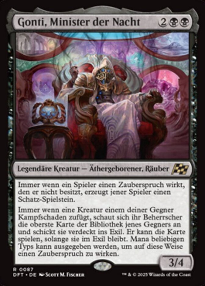 | Rules | Whenever a player casts a spell they don't own, that player creates a Treasure token. Whenever a creature deals combat damage to one of your opponents, its controller looks at the top card of that opponent's library and exiles it face down. They may play that card for as long as it remains exiled. Mana of any type can be spent to cast a spell this way. |
