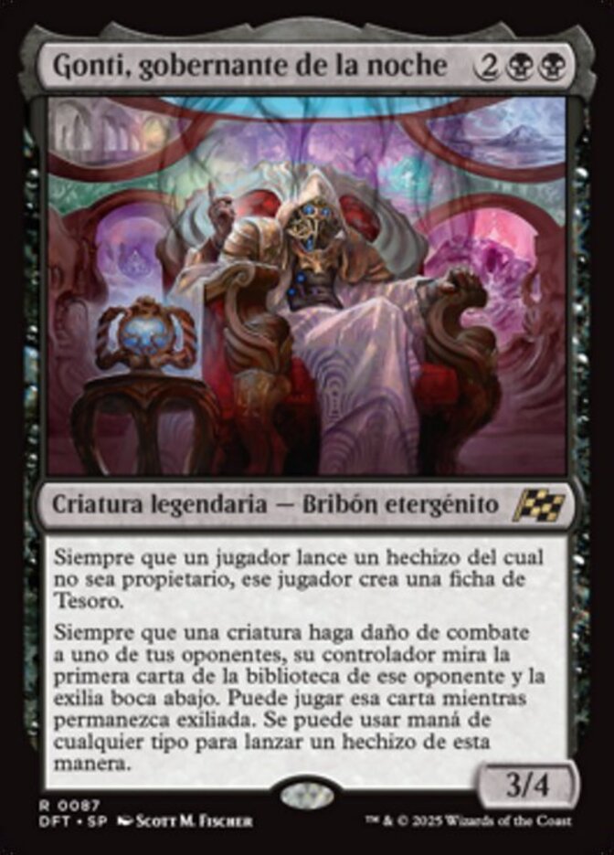 | Rules | Whenever a player casts a spell they don't own, that player creates a Treasure token. Whenever a creature deals combat damage to one of your opponents, its controller looks at the top card of that opponent's library and exiles it face down. They may play that card for as long as it remains exiled. Mana of any type can be spent to cast a spell this way. |