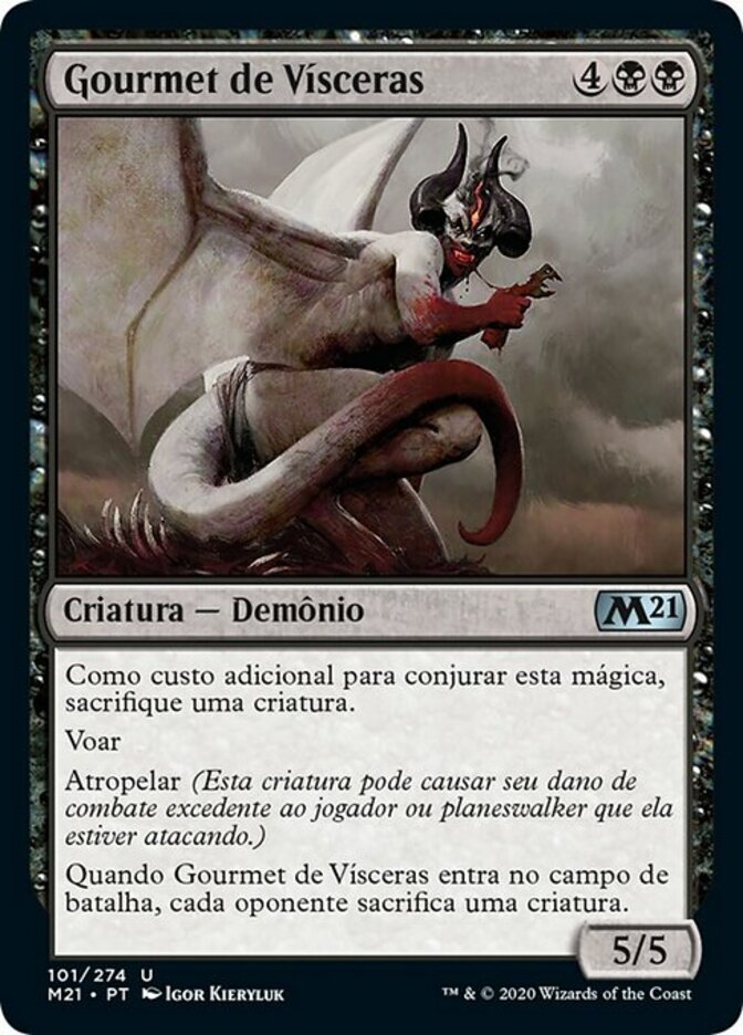 | Rules | As an additional cost to cast this spell, sacrifice a creature. Flying Trample (This creature can deal excess combat damage to the player or planeswalker it's attacking.) When Goremand enters the battlefield, each opponent sacrifices a creature. |