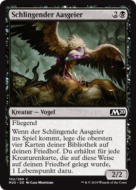 | Rules | Flying When Gorging Vulture enters the battlefield, mill four cards. You gain 1 life for each creature card put into your graveyard this way. |
