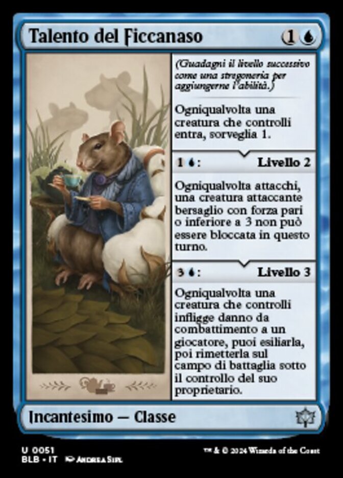| Rules | (Gain the next level as a sorcery to add its ability.) Whenever a creature you control enters, surveil 1. : Level 2 Whenever you attack, target attacking creature with power 3 or less can't be blocked this turn. : Level 3 Whenever a creature you control deals combat damage to a player, you may exile it, then return it to the battlefield under its owner's control. |