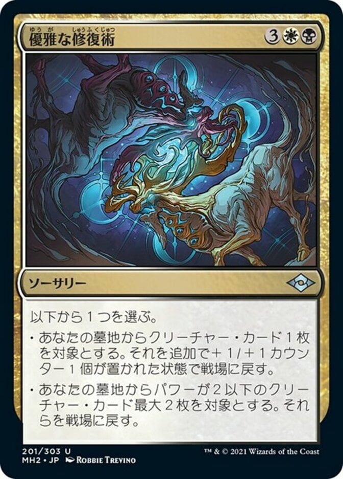 | Rules | Choose one — • Return target creature card from your graveyard to the battlefield with an additional +1/+1 counter on it. • Return up to two target creature cards with power 2 or less from your graveyard to the battlefield. |