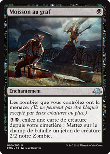 | Rules | Zombies you control have menace. (They can't be blocked except by two or more creatures.) , Exile a creature card from your graveyard: Create a 2/2 black Zombie creature token. |