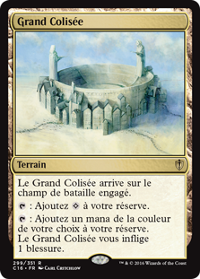 | Rules | Grand Coliseum enters the battlefield tapped. : Add . : Add one mana of any color. Grand Coliseum deals 1 damage to you. |