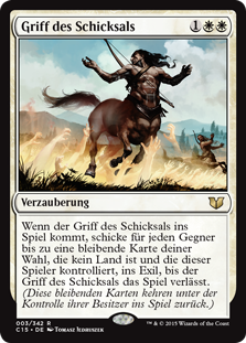 | Rules | When Grasp of Fate enters the battlefield, for each opponent, exile up to one target nonland permanent that player controls until Grasp of Fate leaves the battlefield. (Those permanents return under their owners' control.) |