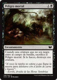 Rules When a nonblack creature enters the battlefield, sacrifice Grave Peril. If you do, destroy that creature.