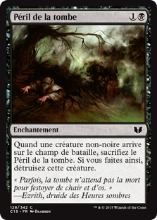 | Rules | When a nonblack creature enters the battlefield, sacrifice Grave Peril. If you do, destroy that creature. |