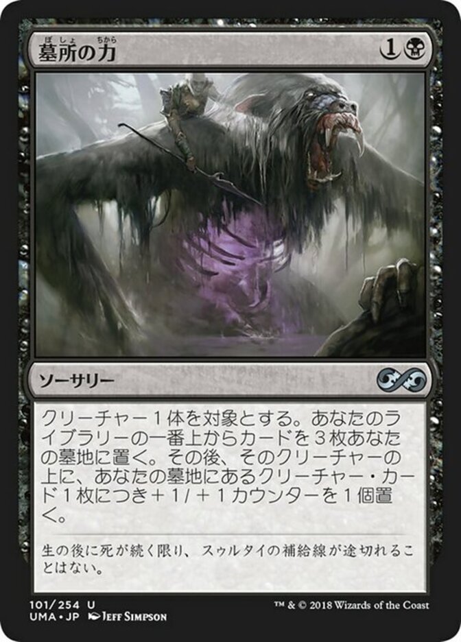 | Rules | Choose target creature. Mill three cards, then put a +1/+1 counter on that creature for each creature card in your graveyard. |