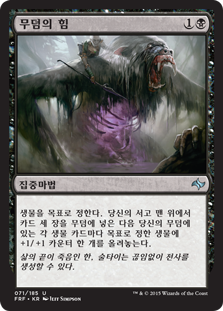 | Rules | Choose target creature. Mill three cards, then put a +1/+1 counter on that creature for each creature card in your graveyard. |
