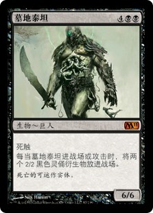 | Rules | Deathtouch Whenever Grave Titan enters the battlefield or attacks, create two 2/2 black Zombie creature tokens. |