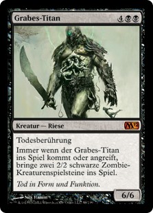 | Rules | Deathtouch Whenever Grave Titan enters the battlefield or attacks, create two 2/2 black Zombie creature tokens. |