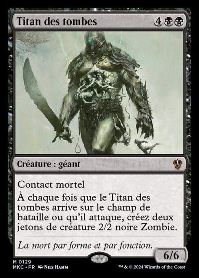 | Rules | Deathtouch Whenever Grave Titan enters the battlefield or attacks, create two 2/2 black Zombie creature tokens. |