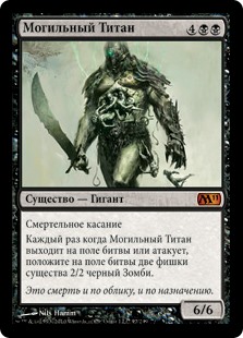 | Rules | Deathtouch Whenever Grave Titan enters the battlefield or attacks, create two 2/2 black Zombie creature tokens. |