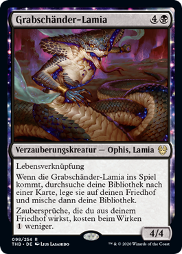 | Rules | Lifelink When Gravebreaker Lamia enters the battlefield, search your library for a card, put it into your graveyard, then shuffle. Spells you cast from your graveyard cost less to cast. |