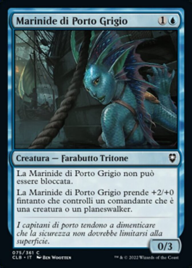 | Rules | Gray Harbor Merfolk can't be blocked. Gray Harbor Merfolk gets +2/+0 as long as you control a commander that's a creature or planeswalker. |