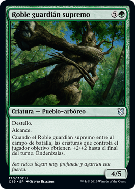 | Rules | Flash (You may cast this spell any time you could cast an instant.) Reach When Great Oak Guardian enters the battlefield, creatures target player controls get +2/+2 until end of turn. Untap them. |