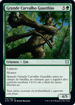 | Rules | Flash (You may cast this spell any time you could cast an instant.) Reach When Great Oak Guardian enters the battlefield, creatures target player controls get +2/+2 until end of turn. Untap them. |
