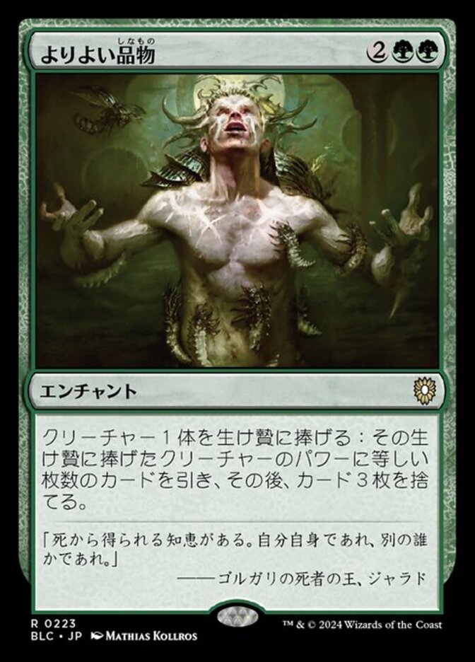 | Rules | Sacrifice a creature: Draw cards equal to the sacrificed creature's power, then discard three cards. |