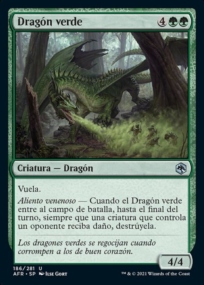 | Rules | Flying Poison Breath — When Green Dragon enters the battlefield, until end of turn, whenever a creature an opponent controls is dealt damage, destroy it. |