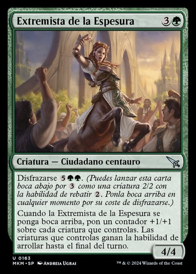 | Rules | Disguise (You may cast this card face down for as a 2/2 creature with ward . Turn it face up any time for its disguise cost.) When Greenbelt Radical is turned face up, put a +1/+1 counter on each creature you control. Creatures you control gain trample until end of turn. |