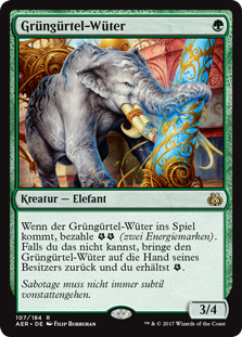 | Rules | When Greenbelt Rampager enters the battlefield, pay (two energy counters). If you can't, return Greenbelt Rampager to its owner's hand and you get . |