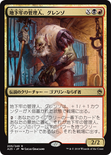 | Rules | Grenzo, Dungeon Warden enters the battlefield with X +1/+1 counters on it. : Put the bottom card of your library into your graveyard. If it's a creature card with power less than or equal to Grenzo's power, put it onto the battlefield. |
