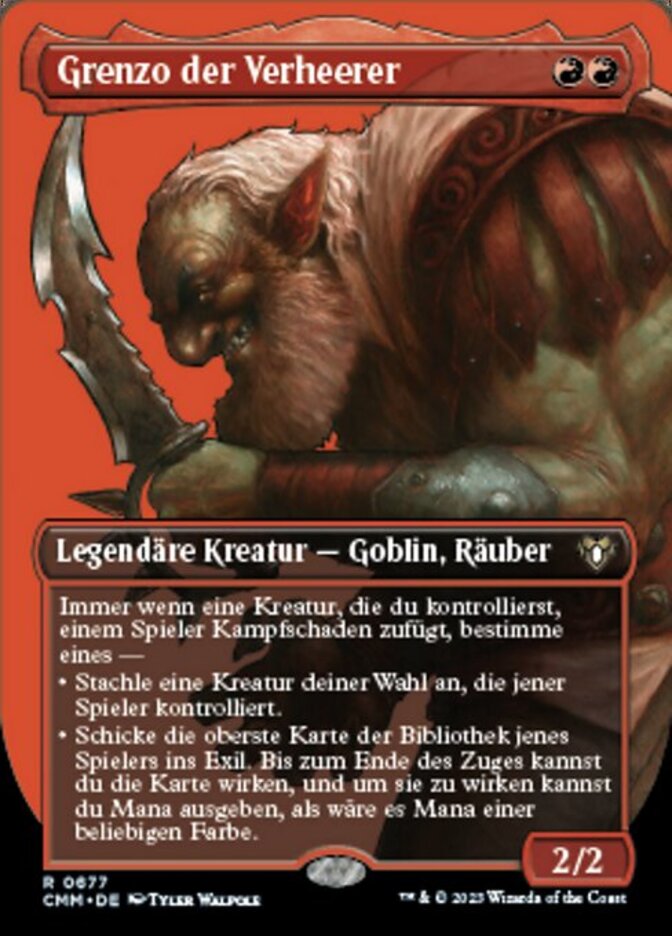 | Rules | Whenever a creature you control deals combat damage to a player, choose one — • Goad target creature that player controls. • Exile the top card of that player's library. Until end of turn, you may cast that card and you may spend mana as though it were mana of any color to cast that spell. |