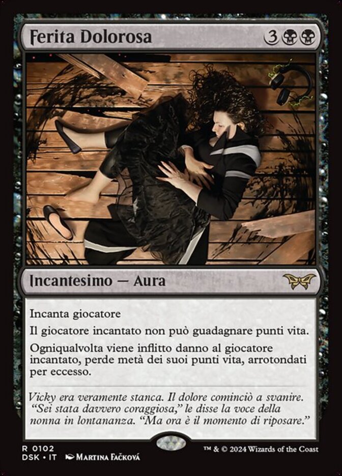 | Rules | Enchant player Enchanted player can't gain life. Whenever enchanted player is dealt damage, they lose half their life, rounded up. |