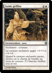 | Rules | Enchant creature Enchanted creature gets +2/+2 and has flying. When enchanted creature dies, create a 2/2 white Griffin creature token with flying. |