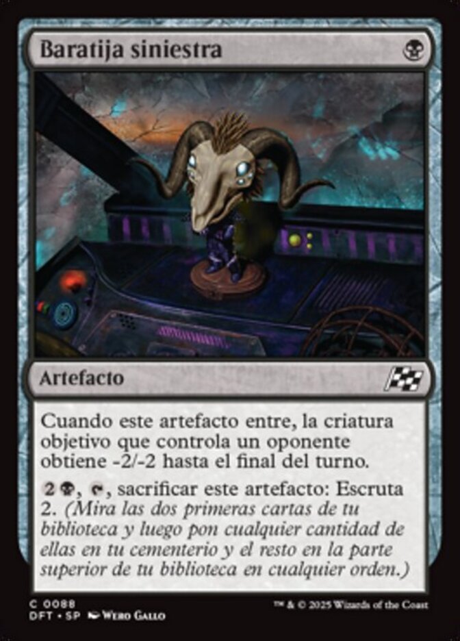 | Rules | When this artifact enters, target creature an opponent controls gets -2/-2 until end of turn. , , Sacrifice this artifact: Surveil 2. (Look at the top two cards of your library, then put any number of them into your graveyard and the rest on top of your library in any order.) |