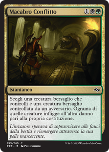 | Rules | Choose target creature you control and target creature an opponent controls. Each of those creatures deals damage equal to its toughness to the other. |