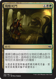 | Rules | Choose target creature you control and target creature an opponent controls. Each of those creatures deals damage equal to its toughness to the other. |