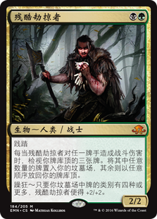| Rules | Trample Whenever Grim Flayer deals combat damage to a player, look at the top three cards of your library. Put any number of them into your graveyard and the rest back on top of your library in any order. Delirium — Grim Flayer gets +2/+2 as long as there are four or more card types among cards in your graveyard. |