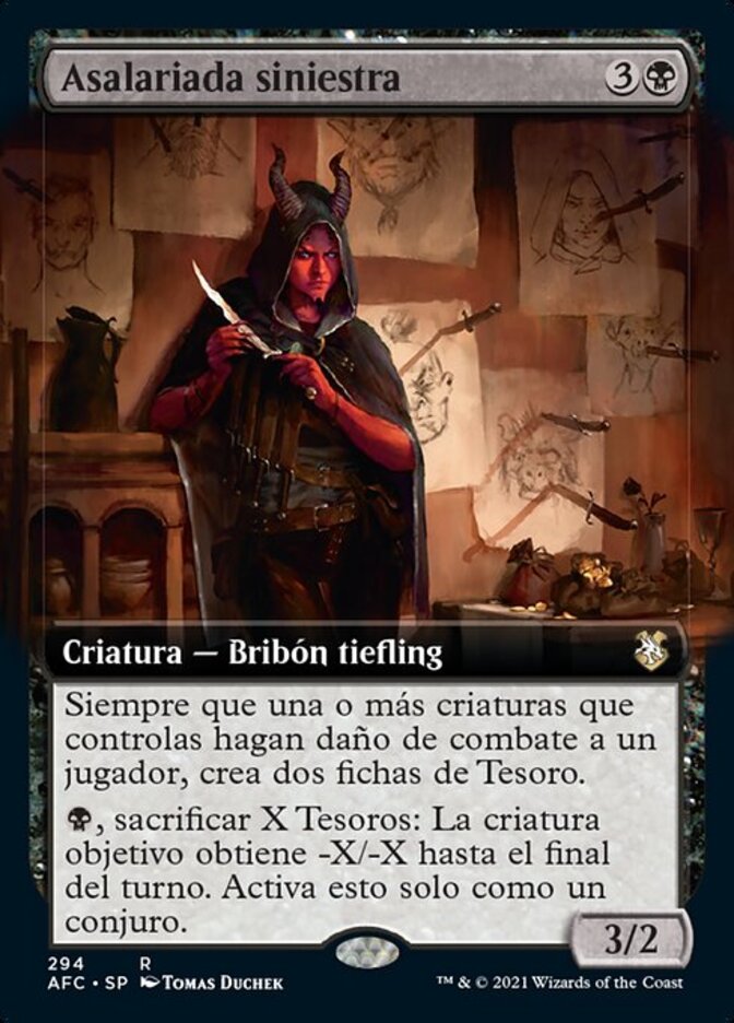 | Rules | Whenever one or more creatures you control deal combat damage to a player, create two Treasure tokens. , Sacrifice X Treasures: Target creature gets -X/-X until end of turn. Activate only as a sorcery. |