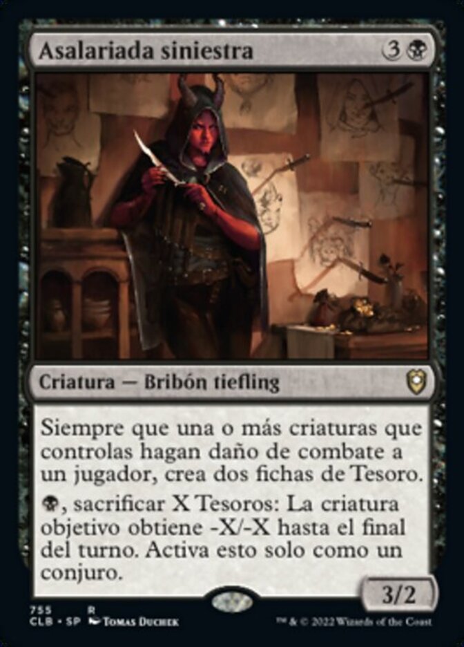 | Rules | Whenever one or more creatures you control deal combat damage to a player, create two Treasure tokens. , Sacrifice X Treasures: Target creature gets -X/-X until end of turn. Activate only as a sorcery. |