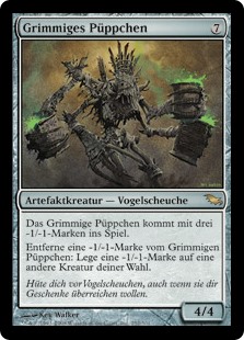 | Rules | Grim Poppet enters the battlefield with three -1/-1 counters on it. Remove a -1/-1 counter from Grim Poppet: Put a -1/-1 counter on another target creature. |