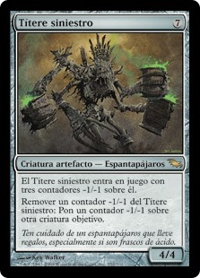 | Rules | Grim Poppet enters the battlefield with three -1/-1 counters on it. Remove a -1/-1 counter from Grim Poppet: Put a -1/-1 counter on another target creature. |