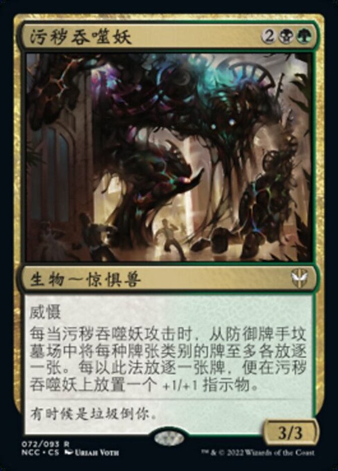 | Rules | Menace Whenever Grime Gorger attacks, exile up to one card of each card type from defending player's graveyard. Put a +1/+1 counter on Grime Gorger for each card exiled this way. |