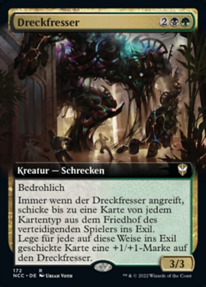 | Rules | Menace Whenever Grime Gorger attacks, exile up to one card of each card type from defending player's graveyard. Put a +1/+1 counter on Grime Gorger for each card exiled this way. |