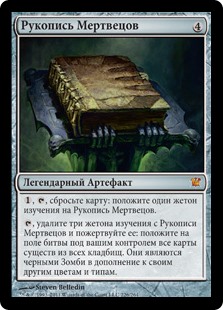 | Rules | , , Discard a card: Put a study counter on Grimoire of the Dead. , Remove three study counters from Grimoire of the Dead and sacrifice it: Put all creature cards from all graveyards onto the battlefield under your control. They're black Zombies in addition to their other colors and types. |