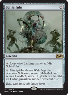 | Rules | : Put a charge counter on Grindclock. : Target player mills X cards, where X is the number of charge counters on Grindclock. |