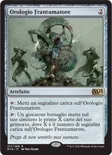 | Rules | : Put a charge counter on Grindclock. : Target player mills X cards, where X is the number of charge counters on Grindclock. |