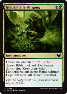| Rules | Reveal the top five cards of your library. You may put a creature or land card from among them into your hand. Put the rest into your graveyard. |