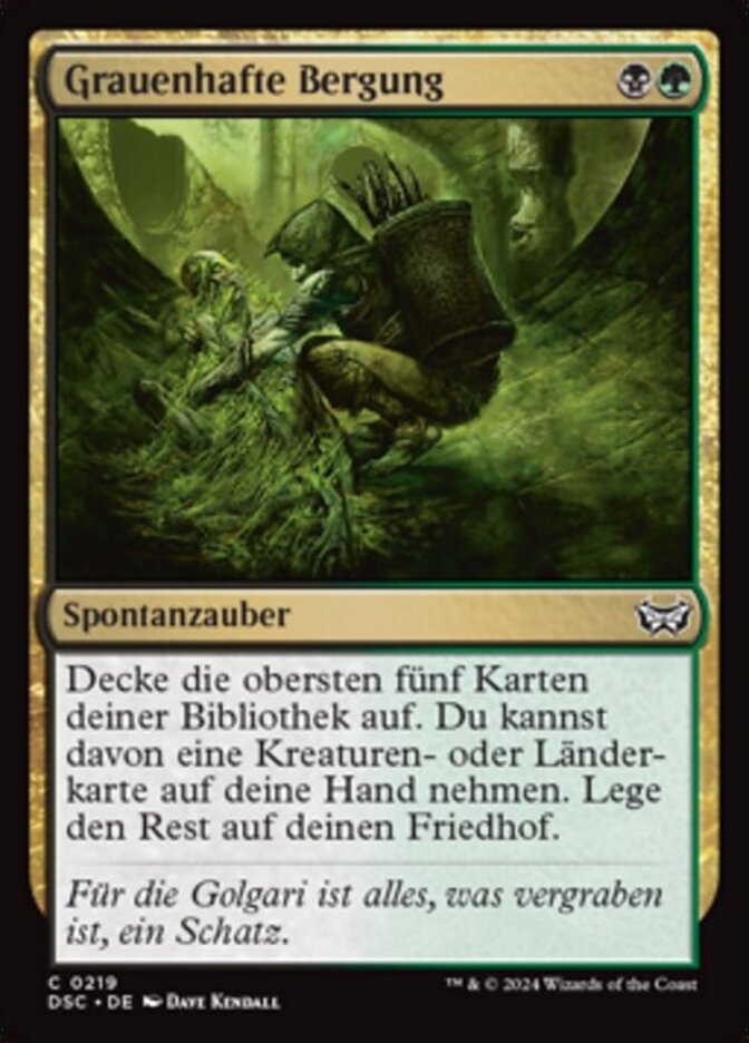 | Rules | Reveal the top five cards of your library. You may put a creature or land card from among them into your hand. Put the rest into your graveyard. |