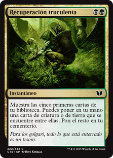 | Rules | Reveal the top five cards of your library. You may put a creature or land card from among them into your hand. Put the rest into your graveyard. |