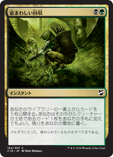 | Rules | Reveal the top five cards of your library. You may put a creature or land card from among them into your hand. Put the rest into your graveyard. |
