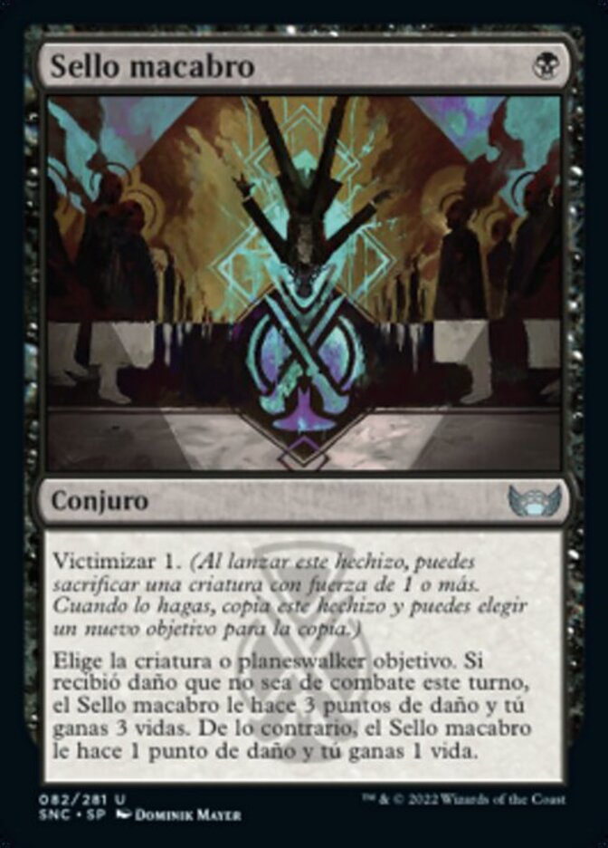 | Rules | Casualty 1 (As you cast this spell, you may sacrifice a creature with power 1 or greater. When you do, copy this spell and you may choose new targets for the copy.) Choose target creature or planeswalker. If it was dealt noncombat damage this turn, Grisly Sigil deals 3 damage to it and you gain 3 life. Otherwise, Grisly Sigil deals 1 damage to it and you gain 1 life. |
