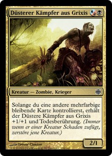 | Rules | As long as you control another multicolored permanent, Grixis Grimblade gets +1/+1 and has deathtouch. (Any amount of damage it deals to a creature is enough to destroy that creature.) |